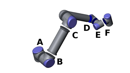 機器人關節A:基座,B:肩部,C:肘部和D、E、F:手腕1、2、3