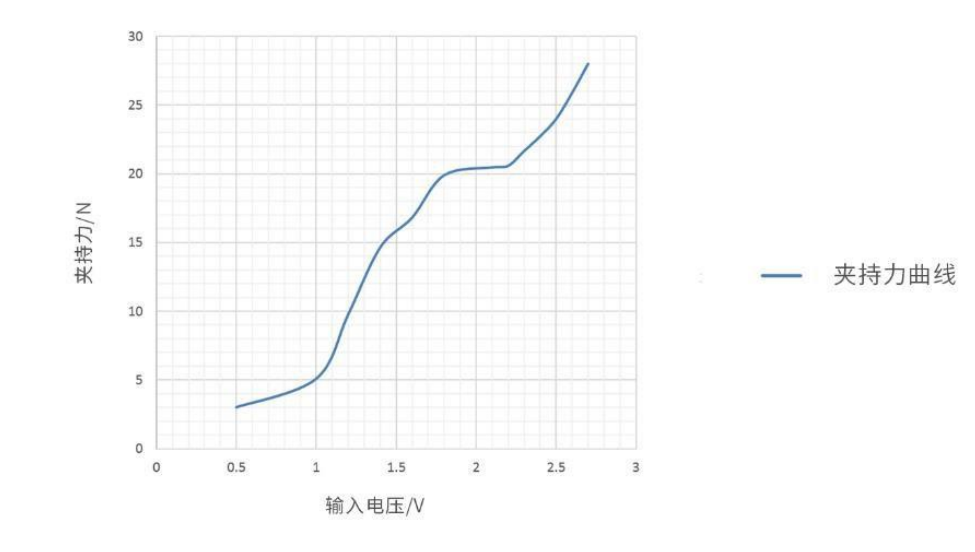 不同的電壓輸入通過白線,輸出不同的夾持力。