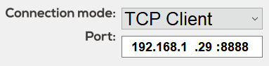 (服務器)模式,根據您設置的通訊盒 IP 及端口號,修改下圖的目標 IP 及端口,如下圖所示。通訊盒做 TCP 服務端時,出廠默認 IP 為 192.168.1.29,監聽端口為8888。