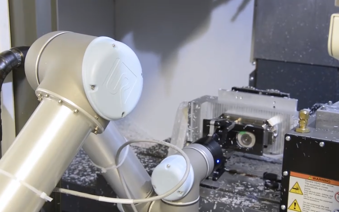 為了使眼鏡造型與質(zhì)量都更好,眼鏡原料被切割成小塊,然后在數(shù)控機床上切割框架,數(shù)控機床由UR機器人和Robotiq夾爪管理。機器人撿起原料,將其裝載到第一個位置,關(guān)上門,按下go按鈕,然后在第二個位置再次進行操作。然后,它取出成品眼鏡并將其放入桶中。眼鏡在準備出貨之前要經(jīng)過許多微調(diào)步驟。