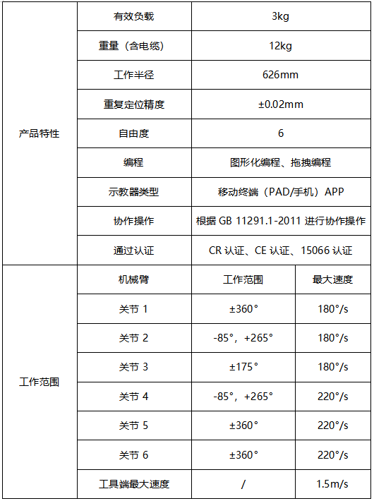 JAKA Zu 3協(xié)作機(jī)器人產(chǎn)品參數(shù)