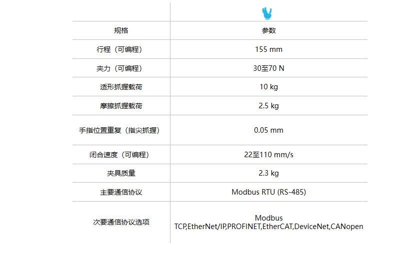 包覆式抓取模式下,夾爪的開度可達 155 毫米。