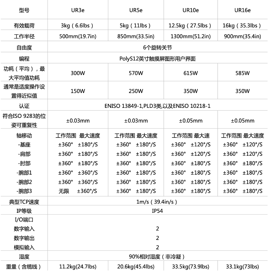 UR3e協(xié)作式機(jī)器人產(chǎn)品參數(shù):