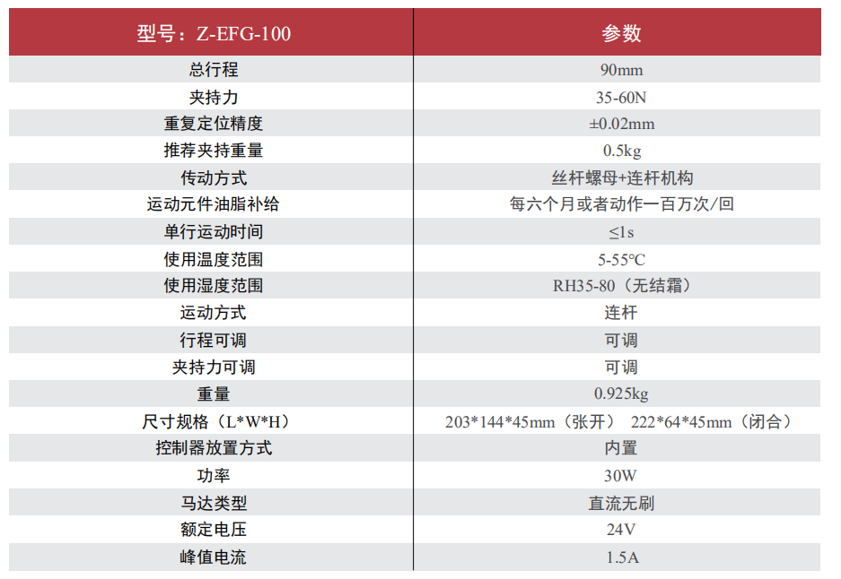 慧靈Z-EFG-100電動夾爪的特點: