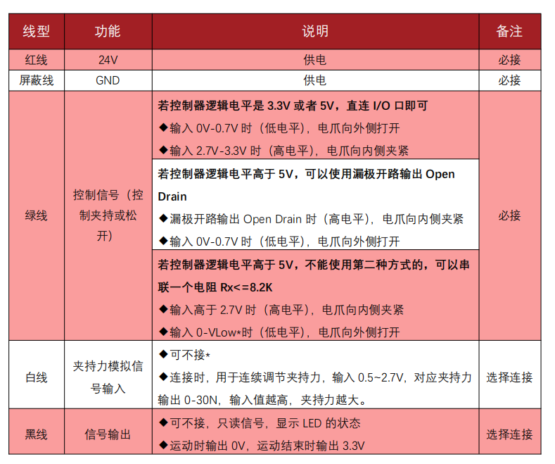 1. 白線不接的情況下,夾持力由電位器控制,白線連接時(shí),夾持力由白線信號控制