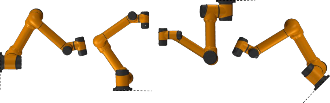 機器人具備 360°安裝位置姿態自適應功能,可支持在底座上安裝、吊裝、壁裝及其他特定安裝方式,如圖所示。