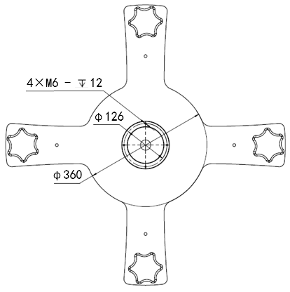 在底座上安裝時,使用 4 顆 M6 螺栓將機器人本體固定在底座上,建議使用兩個Ф6mm 的孔用來安裝銷釘,以提高安裝精度,機械尺寸如下圖所示。
