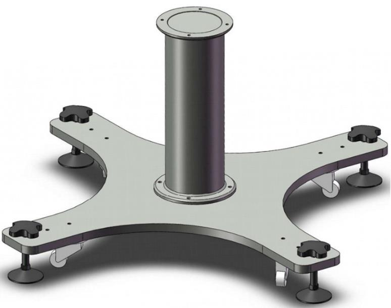 底座帶有 4 個地腳螺栓和 4 個萬向輪,方便固定和移動。用戶需要固定機器人本體時,旋轉地腳螺栓上部,降下地腳螺栓;要移動機器人本體時,用工具(扳手)旋轉地腳螺栓下部螺母,升高地腳螺栓使底座萬向輪著地即可。