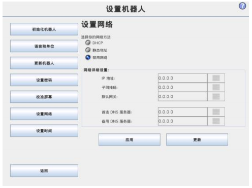 • 設置網絡打開用于設置機器人控制箱以太網的界面 。