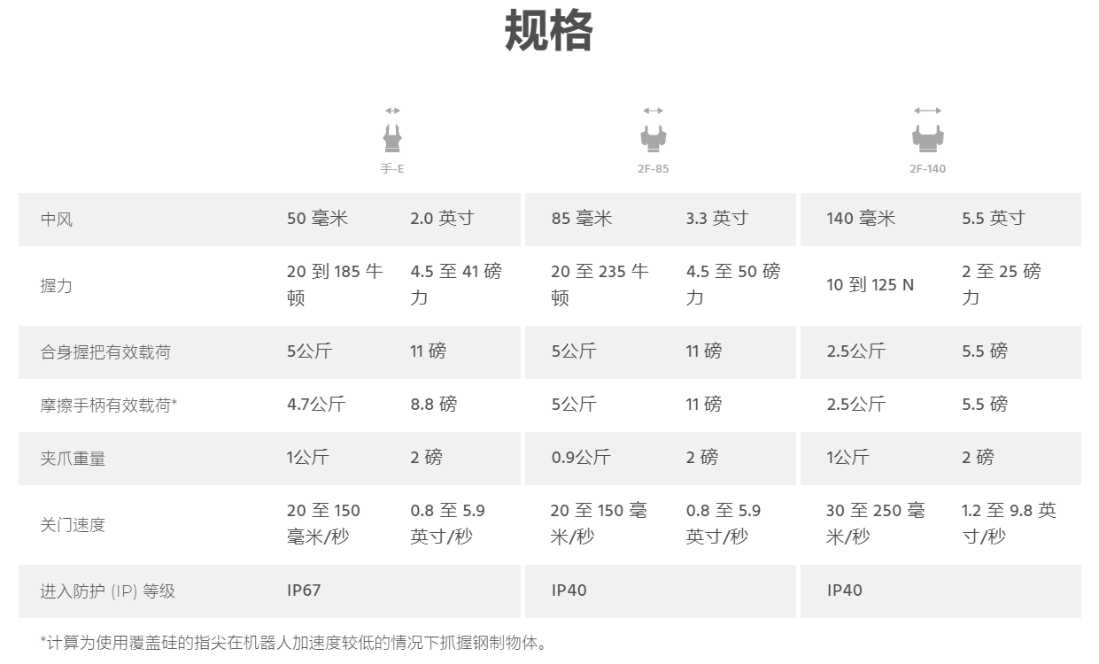 - 專為協作機器人打造 :兩種寬行程選擇:85 毫米和 140 毫米;獲得專利的手指設計可實現內部和外部平行抓握,以及獨特的包圍抓握模式。