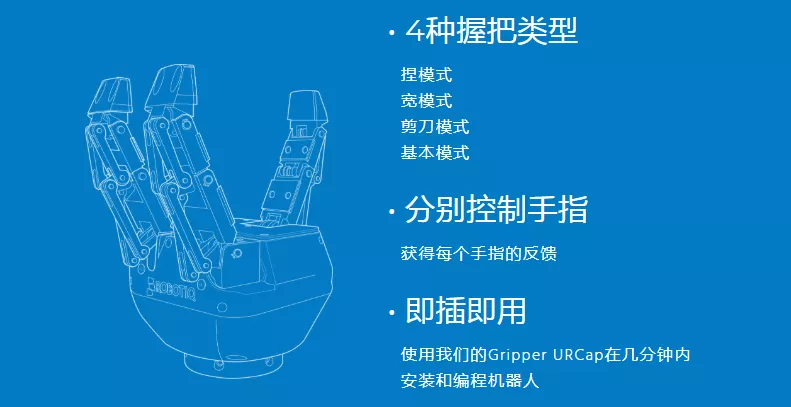 三指夾爪是最大的多功能性和靈活性的最佳選擇。它可以拾取任何形狀的任何物體。三指夾爪與所有工業機器人兼容。使用Robotiq的三指夾爪,您將專注于您的研究目標,而不是努力整合您的末端執行器。