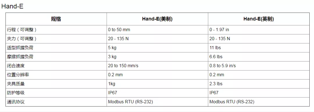 Hand-E 夾爪的高精度和50 mm的平行行程使其非常適合精密裝配任務,而其密封設計則確保了在最艱難的制造條件(包括CNC加工)中的可靠性。Hand-E的設計遵循ISO / TS 15066標準最佳實踐,具有最大的作用力,圓滑的邊緣,自鎖功能以及其他功能。