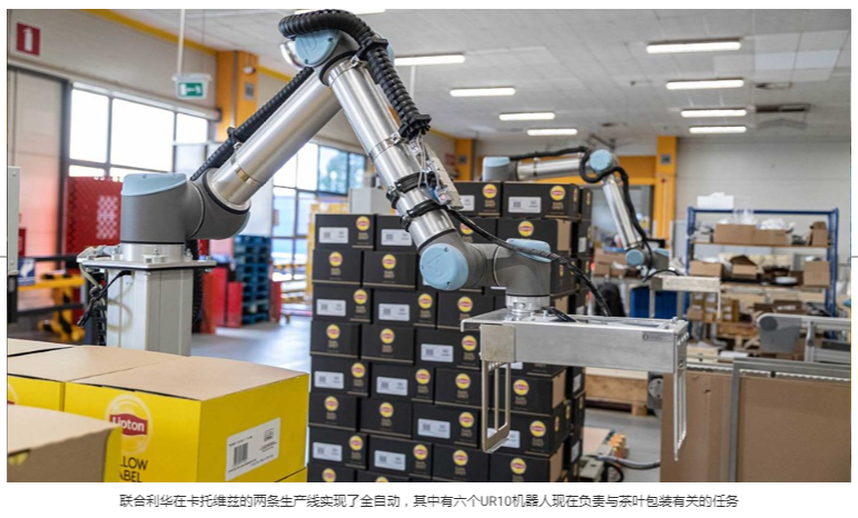 聯(lián)合利華(Unilever)是快速消費(fèi)品(FMCG)行業(yè)中的全球最大公司之一,擁有約400個(gè)品牌,并在190多個(gè)國(guó)家/地區(qū)擁有業(yè)務(wù)。該公司在波蘭有四個(gè)生產(chǎn)工廠。其中之一,在卡托維茲(Katowice)鎮(zhèn),專(zhuān)門(mén)用25公斤麻袋包裝運(yùn)到工廠的茶。由六個(gè)UR10協(xié)作機(jī)器人將員工將待售產(chǎn)品包裝到盒子中的紙箱放在托盤(pán)上。優(yōu)傲機(jī)器人的使用縮短了碼垛時(shí)間,優(yōu)化了工作人體工程學(xué),并減輕了員工執(zhí)行最艱巨任務(wù)的負(fù)擔(dān)。