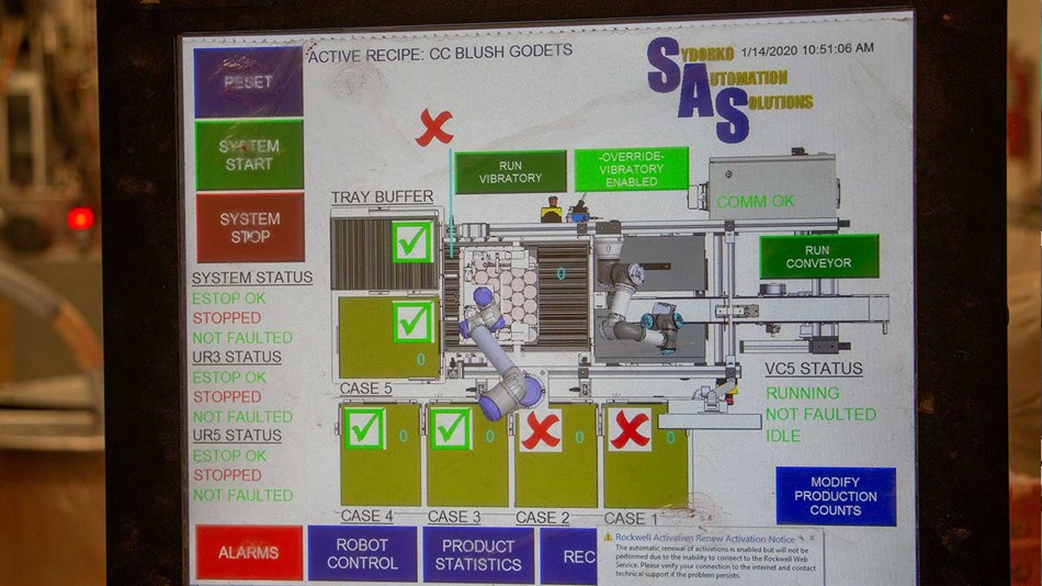 現在,已經建立了基于協作機器人的系統,但Coty團隊可以在內部對其進行管理。“如果需要進行任何故障排除,與我們優傲機器人集成商總是可以打個電話,” Baublitz說。“但是到現在為止,我們已經使用手推車運行了幾個月,而且我們足夠舒適,可以對內部的99%的問題進行故障排除。”