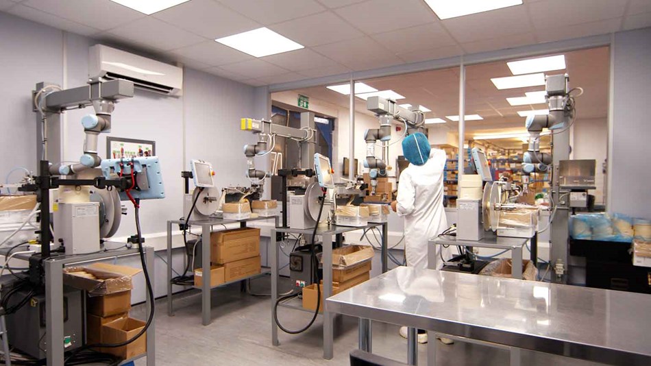 B公司是一家英國的中小企業,主要生產定制化的促銷產品。為了提高生產力,他們部署了6臺UR3機器人,主要是用于縫紉和產品裝配線。通過部署的UR3協作機器人,B公司的食品旗產量從25萬增加到1500萬。