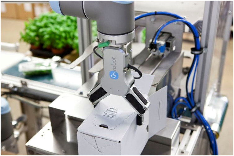 最新的自動化投資之一是一個靈活的包裝生產線,配備了來自優傲的協作機器人,這是一個配備OnRobot RG6夾具的合作機器人。機器人手柄的兩個“手指”采用智能,先進的技術,在直觀地抓握和移動物體時模仿人類的觸覺。工廠經理Jørgensen解釋說:“我們正在尋找一種可以輕輕提起草藥和花朵而不會壓碎它們的夾具。我們選擇了一款R6G抓手,其特點是輕柔細致的抓握動作以及精確性和靈活性。我們的新解決方案可自動折疊包裝紙盒,并在折疊盒中放置草藥細切。”