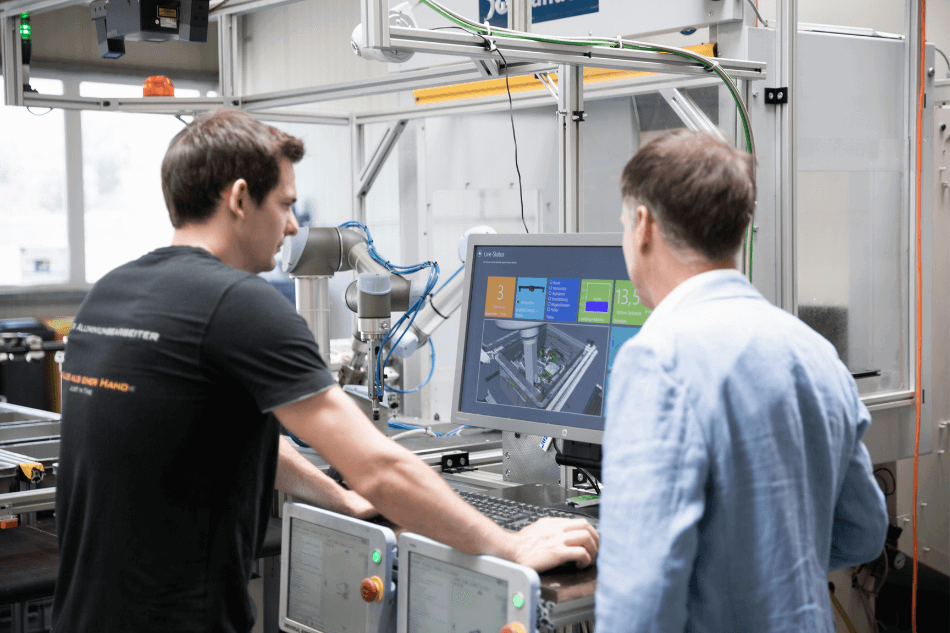 在兩班制作業(yè)中,協(xié)作機器人每天處理多達2400個鋁零件。為了做到這一點,Waltle集成了3D攝像頭系統(tǒng)。外部攝像頭最初會掃描鋁制零件并生成3D數(shù)據(jù)集-所謂的散點圖。這使第一個協(xié)作機器人能夠識別復(fù)雜的表面結(jié)構(gòu)以及對象的精確位置。配備了真空吸盤的協(xié)作機器人可以一箱又一箱地投入使用。刀具法蘭上的附加軸使協(xié)作機器人能夠執(zhí)行無碰撞且精確的工件處理。為確保抓取精度,協(xié)作機器人將零件對準臨時托盤。如果零件正確安裝,則UR5機器人會將其放入另一個托盤中。第二個協(xié)作機器人從那里拾取零件并將其精確地放置在CNC銑床的液壓夾具中。
