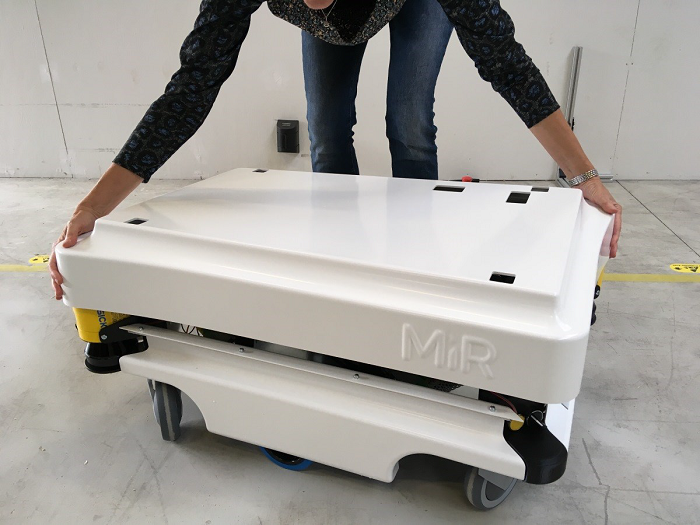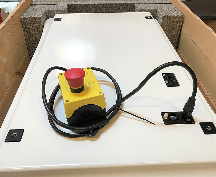 6. 將急停盒安裝并連接在機器人外蓋頂部。