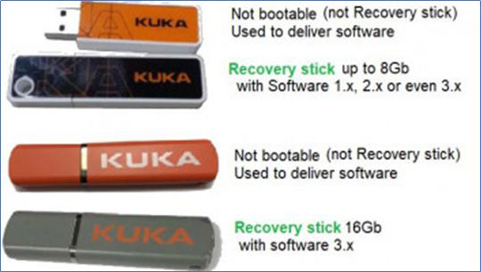 中國家電公司美的集團于2017年1月成功收購德國機器人公司KUKA 94.55%的股權。1996年,KUKA開始生產基于PC的機器人控制系統的機器人。到目前為止,KUKA機器人的控制系統仍然是基于美國微軟公司的PC和Windows操作系統。如果中美貿易摩擦繼續升級,這可能成為對KUKA機器人的潛在致命威脅。KRC4系統的KSS(庫卡系統軟件)運行在機器人控制柜內,基于Windows Embedded Standard 7 V4.x操作系統,承擔工業機器人所需的所有基本功能,如軌跡設計、I/O管理、數據和文件管理、過程數據包等。kuka系統軟件的操作界面稱為KUKA smart HMI(smart KUKA系統軟件的操作界面在KUKA機器人教學裝置的smart PAD上,可以執行以下操作:管理用戶、在線表格編程、KRL語言編程、程序編輯、查看機器人信息、查看I/O信號狀態、強制輸出DO信號、配置機器人系統參數等。對于KUKA機器人控制系統,有兩種類型的u盤可以訂購。一個是加載了KUKA機器人技術規范、Workvisual軟件安裝包、沒有啟動和引導功能的零件說明手冊的普通u盤;另一個是用于為KUKA機器人生成和恢復系統映像的系統u盤。目前,KUKA機器人的技術手冊等資料大多以虛擬光盤的形式提供給用戶,而不是用u盤加載。所以技術人員提到KUKAu盤,基本都是指KUKA系統的u盤。下圖是這兩種u盤的物理照片。