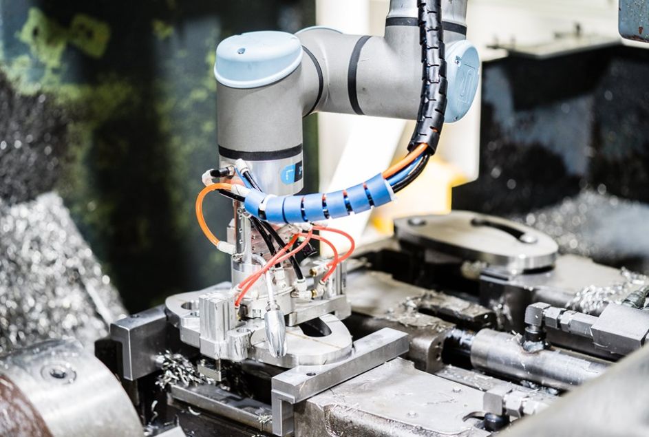 于是,Ket-Met便購入了UR10協作機器人,用來提高自動車床的產量,安裝和編程花了兩周時間。優傲將工作件移動到車床或銑床上,等待其完成加工,然后將成品運輸到洗滌籃中進行清洗。